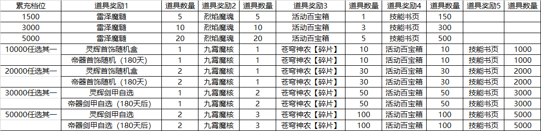 限时累充(活动开启时间后开始累计,活动结束后可申领符合条件的最高档位,奖励不向下兼容,只取最高档)