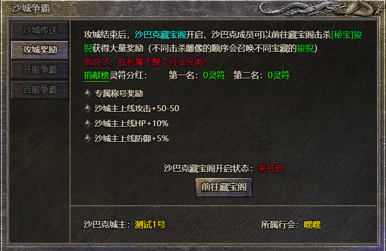 沙城行会成员获得进入沙巴克宝阁资格和专属称号奖励