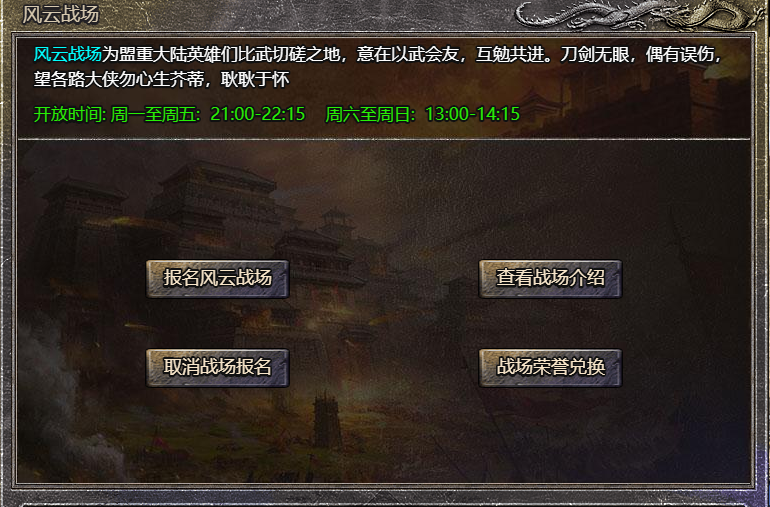 所有3转以上玩家可以报名参加系统根据报名人数开启1个至多个战场,战场最低5v5最高20v20