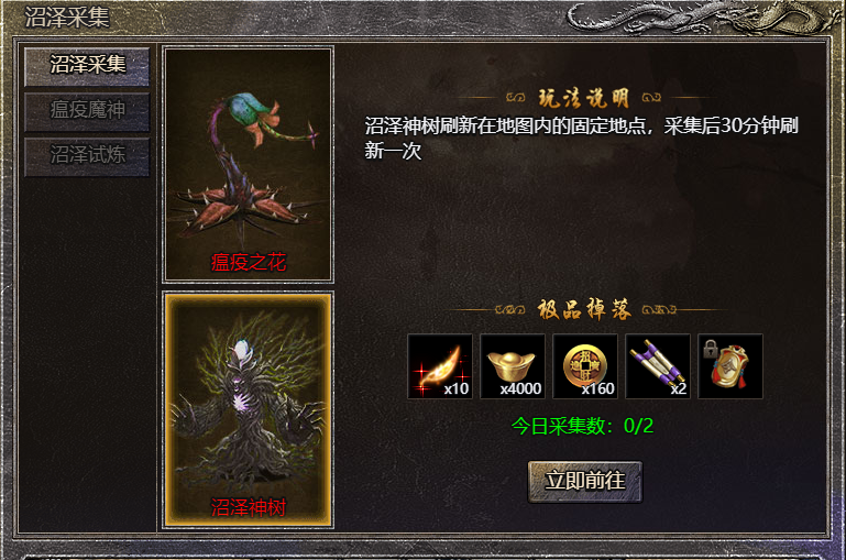 开放时间开服第4天每日11:00-次日05::00开启采集物每日有效采集次数2次,采集神树奖励更高,但是难度也越大