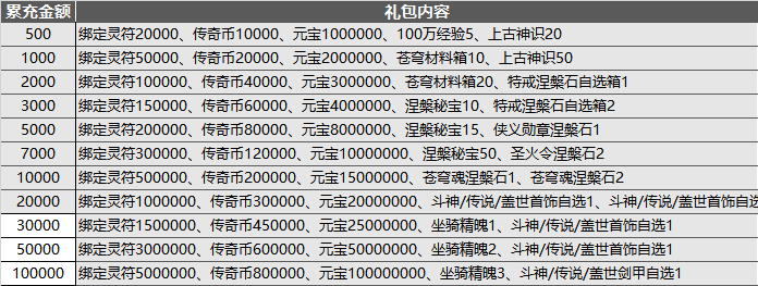 1、玩家在之前游戏累充达到对应金额后邮件申请