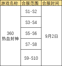 为了给您更好的游戏体验,我们将在9月2日(周四)对《热血封神》的部分区服进行合服操作,合服时间您将无法进入游戏,对此给您带来的不便敬请谅解,谢谢。